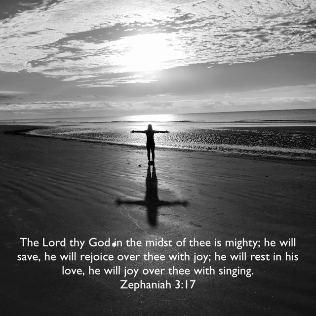 The LORD thy God in the midst of thee is mighty; he will save, he will rejoice over thee with joy; he will rest in his love, he will joy over thee with singing. (Zephaniah 3:17 KJV)