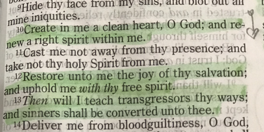 Create for me a pure heart, O God! Renew a resolute spirit within me!  Psalm 51:10 NET