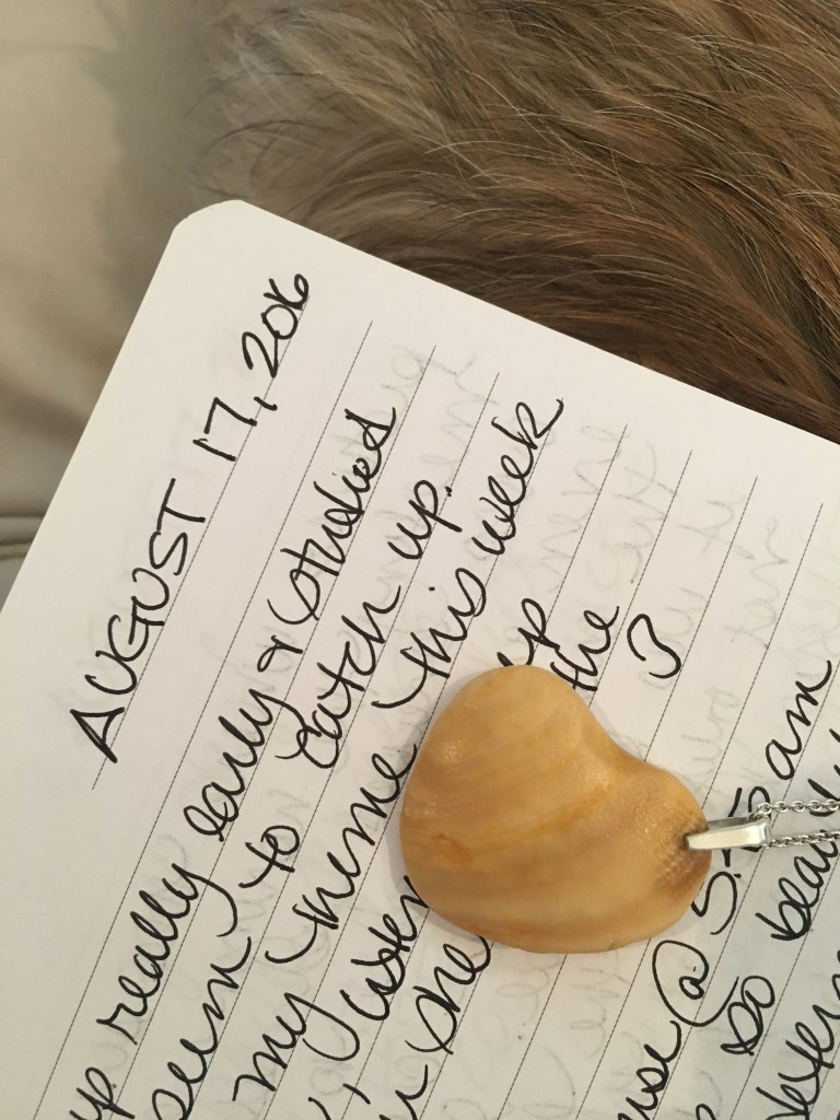 August 17, 2016: I know my theme this week is hear and listen. I keep finding ear shells on the beach. I left the house at 5:45 AM. The sky was so beautiful by 6AM. I was determined to walk to the point at Fort Macon to see the sunrise over the ocean. Not a soul was on the beach and suddenly one man appeared and passed me. I eventually caught up and passed him because his back was obstructing the clear view in all my pictures. As I began to photograph where the sun was breaking the horizon, a cross shape formed. As the sun began its journey to take its place in the clear, blue sky, the cross shape became crisper. It was so beautiful. I could not take a picture of the sun where the cross was not present. I sat not only at the feet of Jesus, but at the foot of the cross. A group of rocks jutted out into the sea; I took my place on one of them to see the LORD’s performance. I believe God orchestrated it, just for me. I turned on Oceans by Hillsong. I wept. Over and over, I sang the song, loudly, as my prayer, and I took in the masterpiece that God had painted for me on this special day. AND I meant every word. On the way back to the condo, I found three of the most perfect little shells. Special, Special time! This was my prayer: Oceans (Where Feet May Fail) by Hillsong You call me out upon the waters And I will call upon Your name Your grace abounds in deepest waters So, I will call upon Your name Spirit lead me where my trust is without borders Oh, Jesus, you’re my God! I will call upon Your name This was a defining moment in my life that my pictures captured. I had a divine appointment with my heavenly Father on August 17th. I experienced His Glory and His Presence. This is where you need to buckle your seat belt… (*Holy Spirit Breaks happen in the middle of my studies. The Holy Spirit interjects and tells me something. I treat it like a commercial break on TV. However, when Holy Spirit intersects the flow of study, I know it is important and that I better pay attention. I did not remember writing this until I went back to my journal to read about my time at the beach to write this story.) My life will never be the same. It was a turning point, a day of surrender and a day of commitment. It was a day when God showed me how very much He loved me. It was a day when I basked in the radiant glory of God which does not even compare to the glorious sunrise. I know Kris found the shell on the very same day I walked to the point. It was his last run during vacation because he got a huge blister on his foot and couldn’t run anymore that week. He knew that he picked it up the last day he ran. He picked up that one, tiny, perfect shell of all the shells on the beach. Normally, he would immediately give me the shell, but he tucked it in his pocket, brought it home, and had a pendant made for me for Christmas. The Holy Spirit led me back to my journal and this is the Holy Spirit woven together story that unfolded. Remember my earlier journal excerpt from August 17? Look at the picture I drew on that day. It is to the right of my shell pendant. IT IS MY SHELL PENDANT. I drew it four months before I received my gift. Only the Holy Spirit could do such a thing.