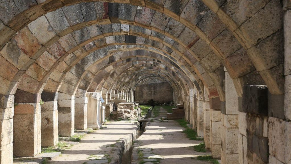 The ancient marketplace of Smyrna still has beautiful arches and running water.
