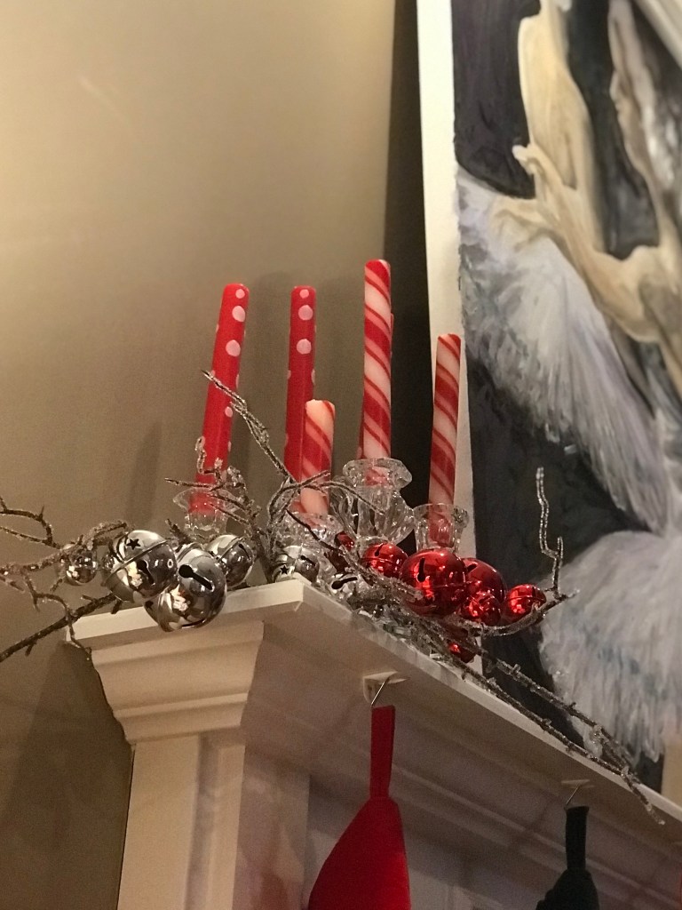 I immediately got up and headed back to the closet where I had begun my early morning search. Instead of looking down, I looked up. I saw a clear box of solid red candles. I thought, “Nope they are not peppermint striped.” I felt lead to look anyway. BINGO! It was my peppermint striped candles. My joy over flowed.