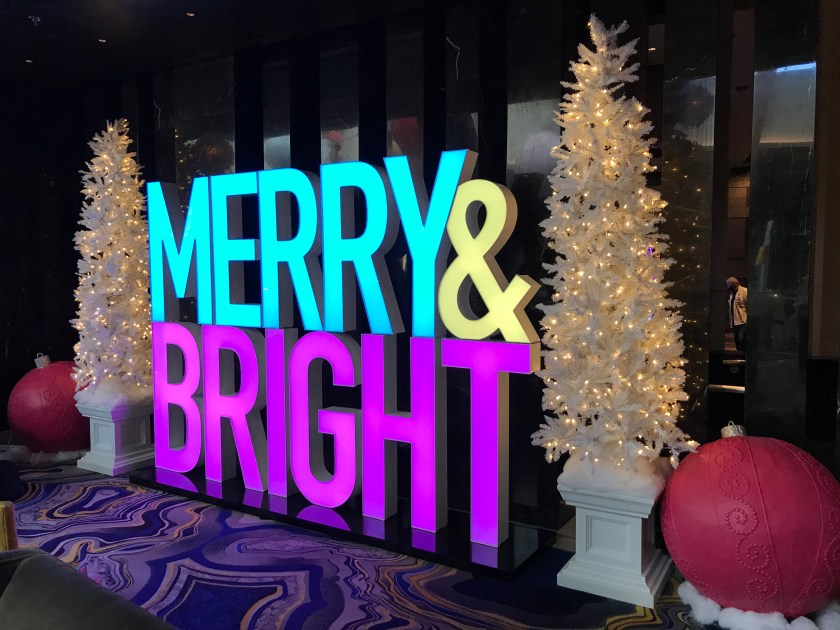 I have seen “MERRY AND BRIGHT” everywhere since I read this verse. I could only laugh when I saw the words on a big sign in our hotel lobby! I have seen them on shirts, mugs, ornaments. I cannot seem to run away from “MERRY AND BRIGHT.”