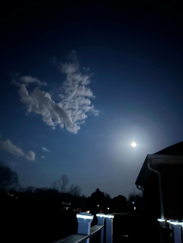 Recently, my husband and I spent a relaxing evening on our deck. We experienced a cool, crisp spring night where we enjoyed God’s majestic creation. The air was refreshingly sharp and invigorating. The wind whispered gently through the trees, rustling the leaves in a soothing dance. The sky was dotted with countless sparkling stars that shimmered like diamonds against the dark canvas. The birds brightly sang their praises, providing the most melodic backdrop. Peace enveloped us.